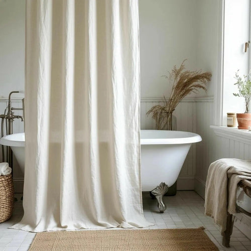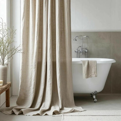 Natural Fabric Shower Curtain Buttonhole Top or Tie. Bathroom Linen Drape Custom Size.