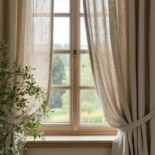Natural Linen Curtain. Soft Semi Sheer Drape. Window Curtain Panel.